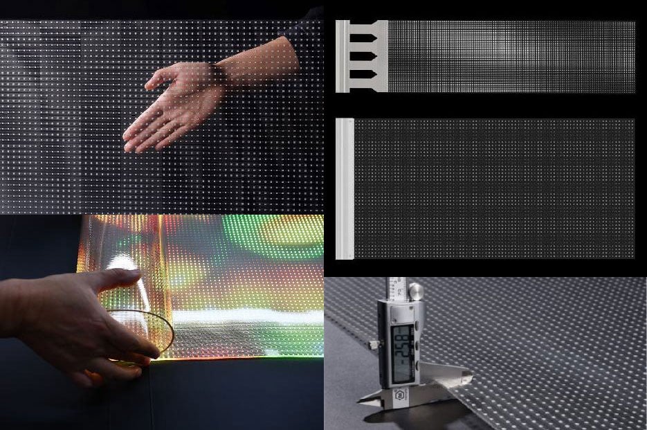最大90%以上の透過率で視界を遮らない、新しい映像表現が可能なフィルムLED。 見た目の新しさのみならず、湾曲面への設置、自然光を取り込む窮屈さのない空間などの演出が可能。