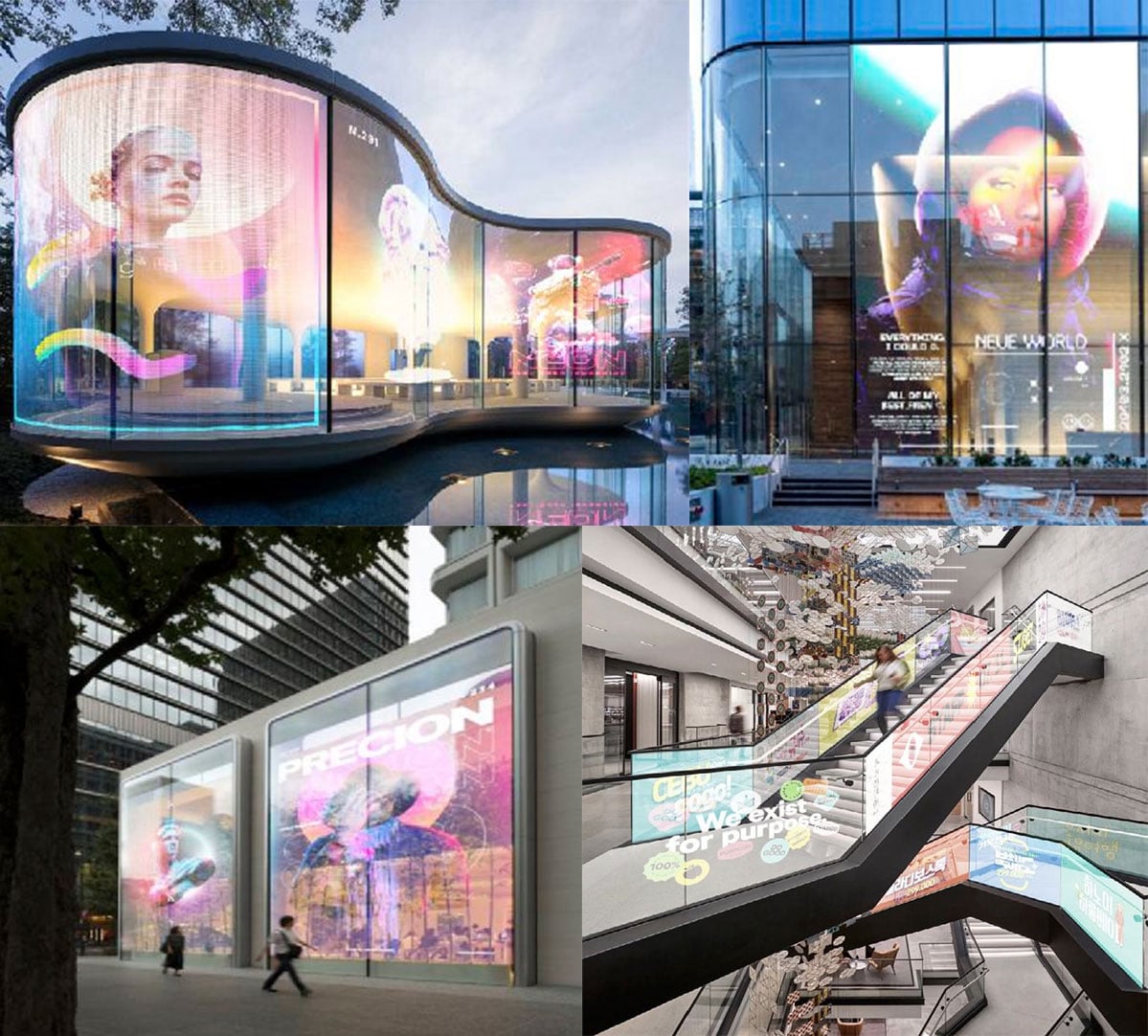 最大90%以上の透過率で視界を遮らない、新しい映像表現が可能なフィルムLED。 見た目の新しさのみならず、湾曲面への設置、自然光を取り込む窮屈さのない空間などの演出が可能。